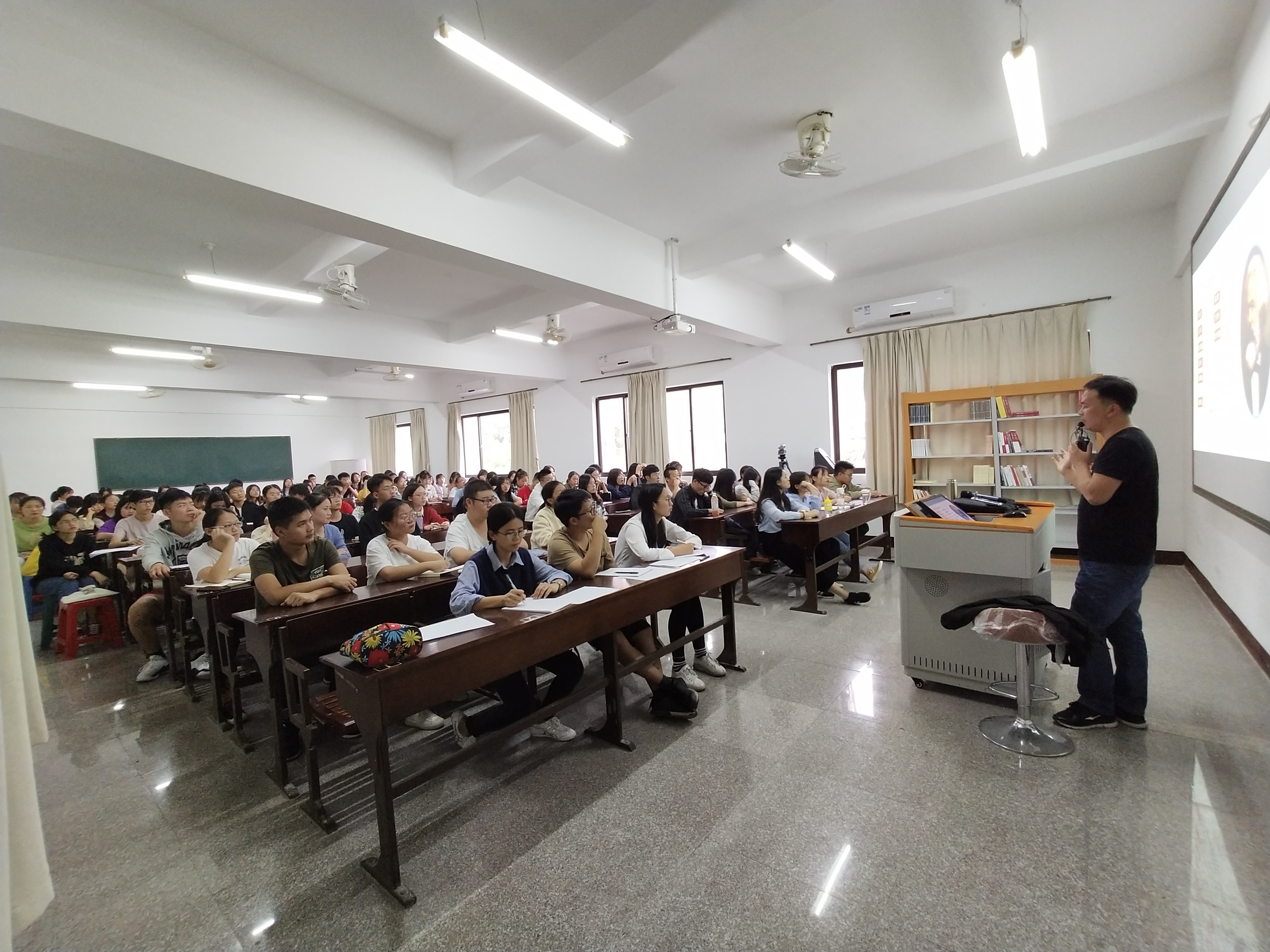 唐锦峰老师从马克思的生平,马克思主义概述,马克思主义传播,马克思主义中国化和学习马克思主义等五个方面进行讲解。他立足于习近平总书记在纪念马克思诞辰200周年上的讲话,以幽默的语言将马克思主义理论与马克思主义在中国的传播讲授给学员,强调当代大学生学习马克思主义的方法和遵循。