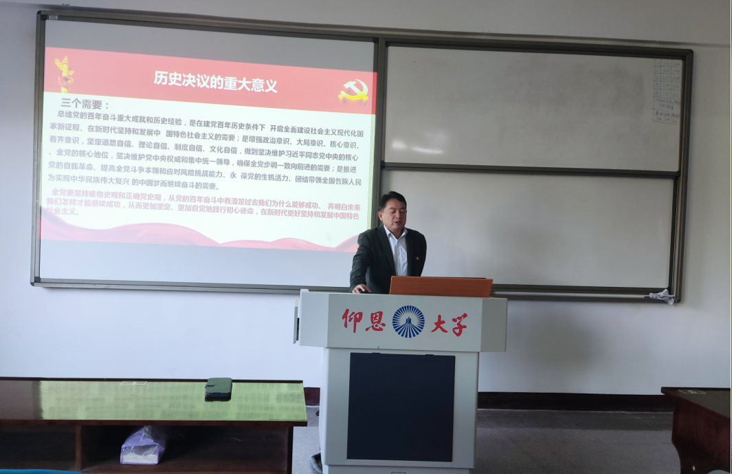 会上pp电子游戏官网党直属党支部书记李克钦从六中全会的议程、重大成就和重大意义;《历史决议》的主要内容和重大创新;全面贯彻落实六中全会精神三个方面进行全面深入的解读。李克钦书记表示,十九届六中全会是中国共产党建党百年的重大历史时刻和“两个一百年”历史交汇的关键节点召开的一次具有里程碑意义的重要会议,pp电子游戏官网是学习研究宣传马克思主义的主阵地,学习好、宣传好、贯彻好党的党的十九届六中全会和历史决议精神是当前和今后一个时期pp电子游戏官网的一个重大政治任务和重要教学任务。作为思政教师要切实推进党的十九届六中全会和历史决议精神进课堂、进头脑、进教材,做好全会精神宣传教育和阐释工作,帮助学生深化对党的百年奋斗历程的认识,引领学生坚定社会主义的信心和坚决拥护中国共产党的领导,努力培养堪当民族复兴大任的时代新人。