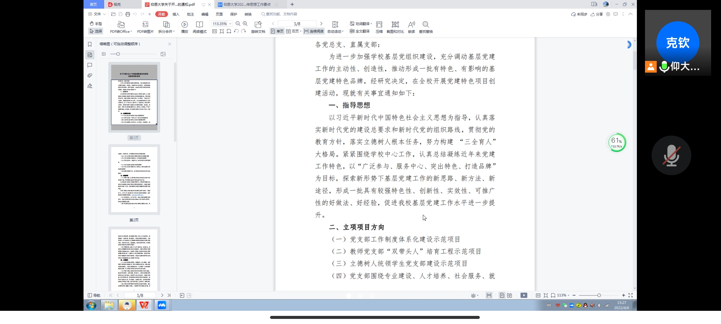 4月6日下午,pp电子游戏官网直属党支部在腾讯会议上召开全体党员会议,会议由pp电子游戏官网直属党支部书记李克钦同志主持,党支部全体党员同志参会。