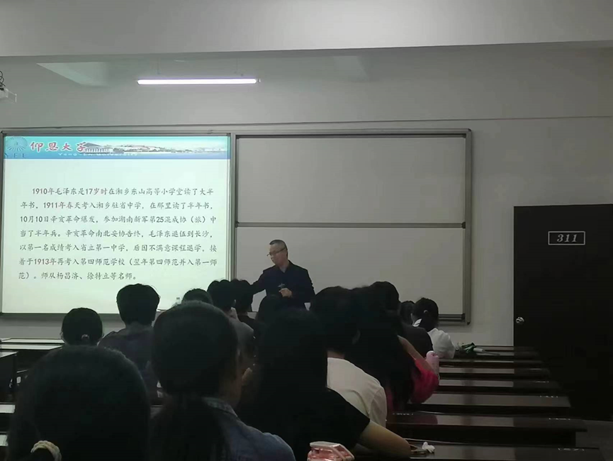 弘扬伟大建党精神,践行初心、担当使命,5月11日下午,仰恩大学习近平新时代中国特色社会主义思想读书社在新区普照楼311室举办了本学期第一次专题讲座,由pp电子游戏官网胡友仁老师主讲《从毛泽东诗词看伟大建党精神》。