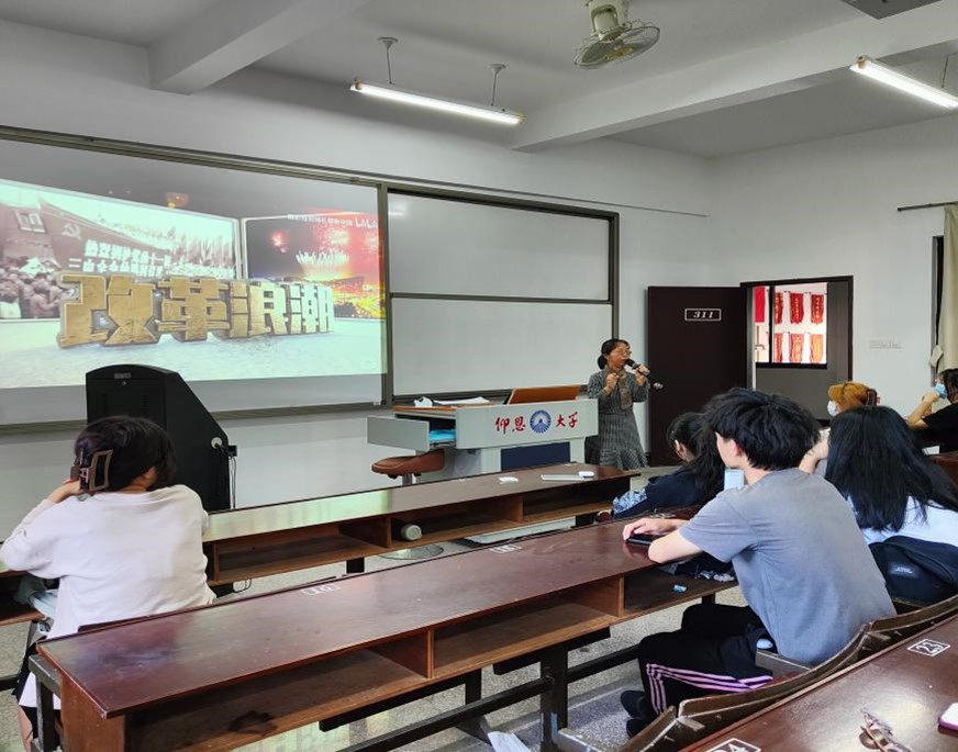 视频放完后,杨丽娥老师希望同学们通过这次观看,更进一步了解党史,感受党一路走来的血雨腥风及困境之中闪烁的壮丽诗篇,并向革命前辈看齐,学习他们艰苦奋斗砥砺前行的作风,学习他们不忘理想不忘初心的精神,在未来的学习路上不畏艰险,敢于思考,为中国更光辉的未来不断前行、不停奋斗。