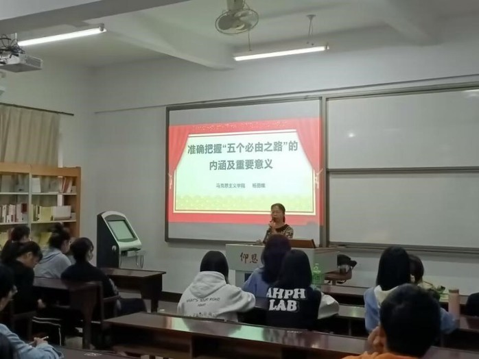 11月23日下午,马克思主义读书社在普照楼311室开展了本学期第二次学习活动。本次活动由pp电子游戏官网的杨丽娥老师为同学们做“准确把握‘五个必由之路’的内涵及重要意义”主题讲座。