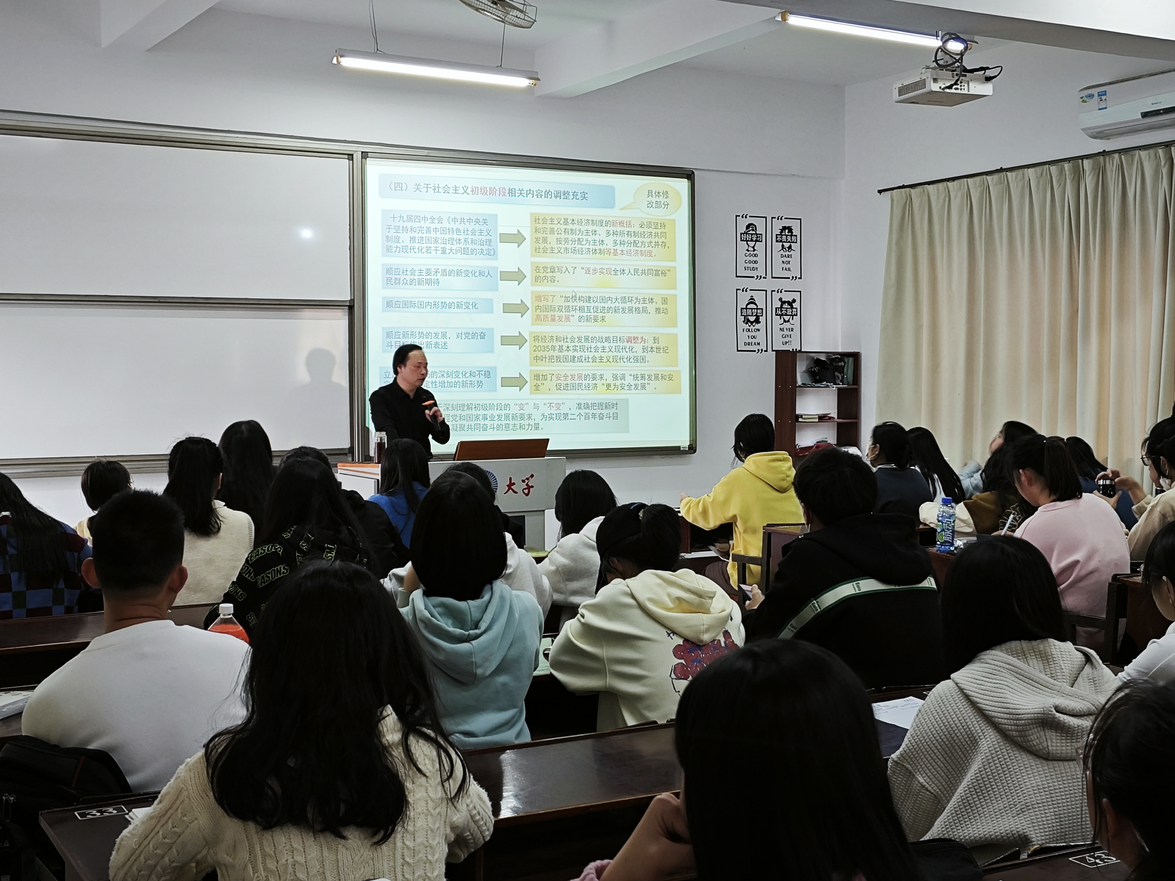 接着,曹文宏教授通过逻辑清晰的讲解,循序渐进地带领同学们探究了二十大党章修改的真知灼见,明确了“将优秀中国传统文化列入与马克思主义理论结合范畴的中国化马克思主义思想”等新修订内容的目的与意义所在。他于二十大党章细节处入手,鞭辟入里、环环相扣,将党章新修订内容与党发展之关联紧密联系的问题,譬如涉及历史经验及从严治党必要性关系的问题,用通俗易懂的话语表达出来,使大家茅塞顿开。