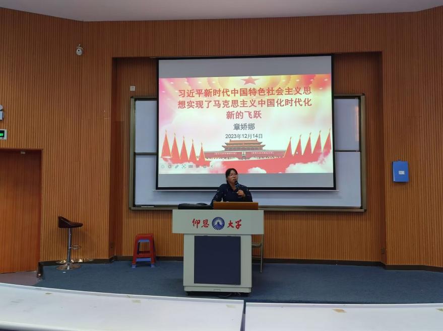 12月14日,习近平新时代中国特色社会主义思想读书社成员在和昌楼博雅讲堂举办了主题为“习近平新时代中国特色社会主义思想实现了马克思主义中国化时代化新的飞跃”读书辅导讲座。讲座由pp电子游戏官网章娇娜老师主讲。