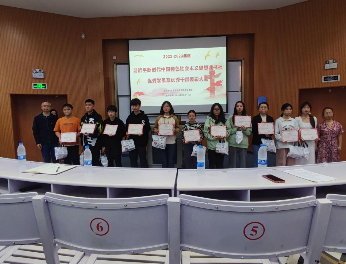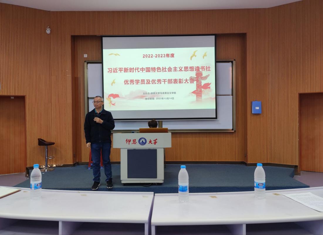 2023年12月14日,为表彰习近平新时代中国特色社会主义思想读书社学员在上一学年时间中取得优异成绩、做出突出贡献的优秀学员以及优秀学生干部,在和昌教学楼博雅讲堂开展习近平新时代中国特色社会主义思想读书社优秀学员及优秀干部表彰大会。pp电子游戏官网胡友仁老师、杨丽娥老师以及章娇娜老师参加了大会。
