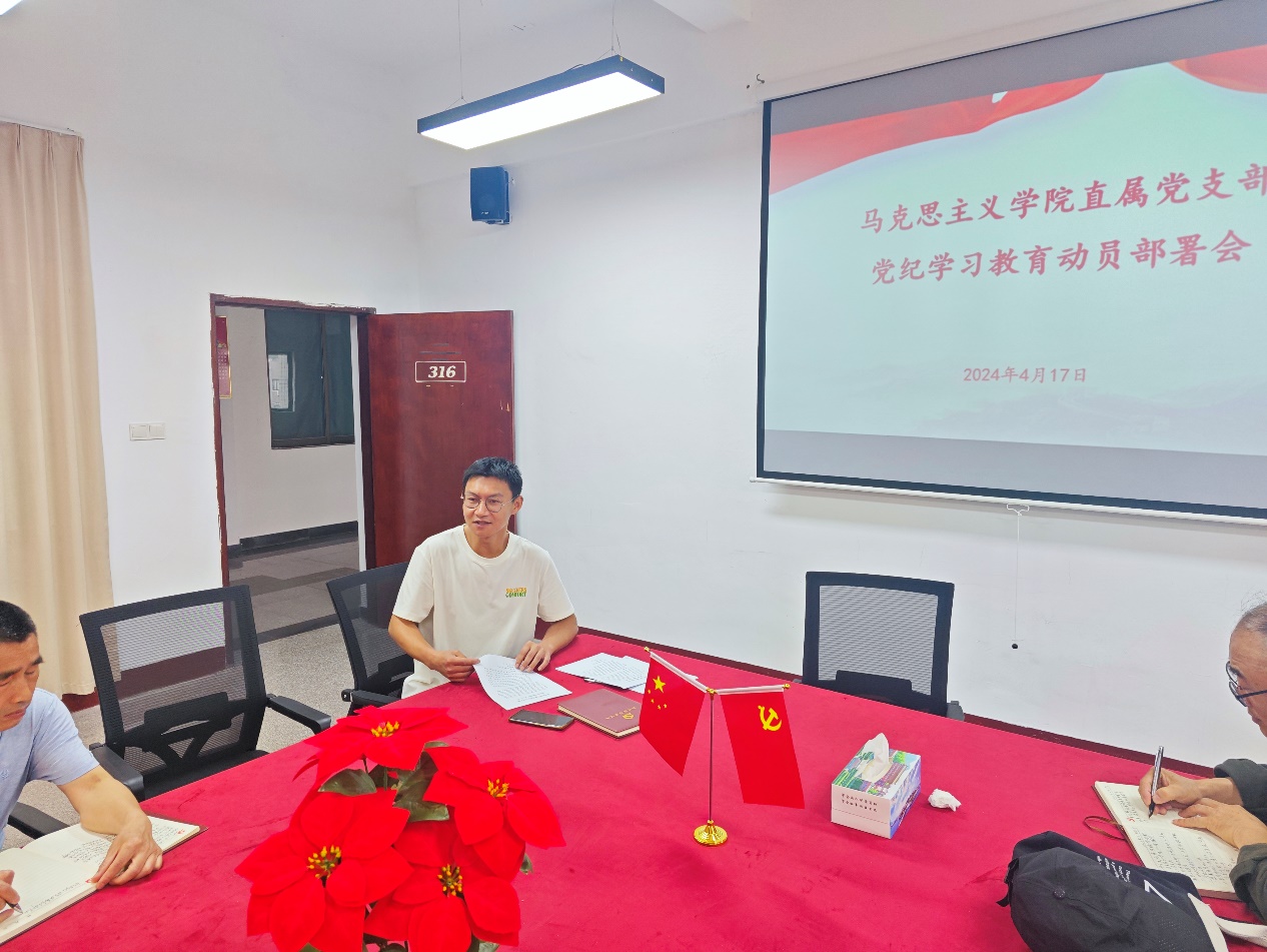 4月17日下午,pp电子游戏官网直属党支部在普照楼316会议室召开党纪学习教育动员部署会,会议由组织委员张维伦同志主持。