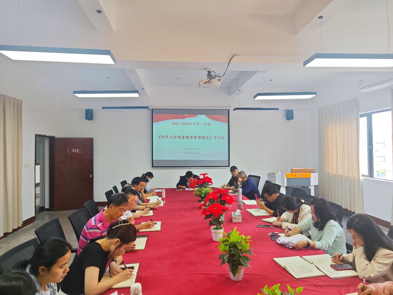 会议主持人张维伦带领全体教师集体学习了《仰恩大学课堂教学管理规定》。文件从教师职能、教学规范、考勤制度、教学进度、教学质量与监督等方面阐述了课堂教学的要求与注意事项。随后大家又学习了常务副院长李克钦根据学校规定所制定的学院执行方案,明确了相应的职责。