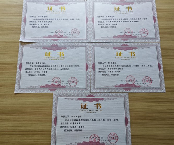 近期,泉州市教育局所组织的全市思政课教师“大练兵”交流展示活动圆满结束,pp电子游戏官网pp电子游戏官网孙海英老师团队、陈迪雅老师团队获得二等奖,蔡惠丽老师团队、刘巧玫老师团队、刘菲老师团队获得三等奖。