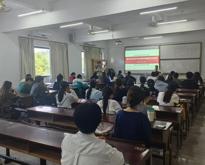 学习会上,蔡惠丽老师从乡村振兴、全面深化改革、传承红色基因、推进中国式现代化等方面带领读书社成员们一起学习了习近平总书记在福建考察时的重要讲话精神。10月15日至16日,习近平总书记先后来到漳州、厦门等地,深入乡村、红色教育基地、文物保护单位、自由贸易试验区等考察调研,并发表重要讲话。蔡惠丽老师表示习近平总书记的重要讲话精神为福建高质量发展指明了方向,擘画了蓝图,也为我们青年学子提供了行动指南,号召同学们要把总书记在福建考察时的重要讲话精神和党的二十届三中全会精神紧密结合起来,将个人的成长融入到国家的发展大局之中,为国家的繁荣发展贡献力量。
