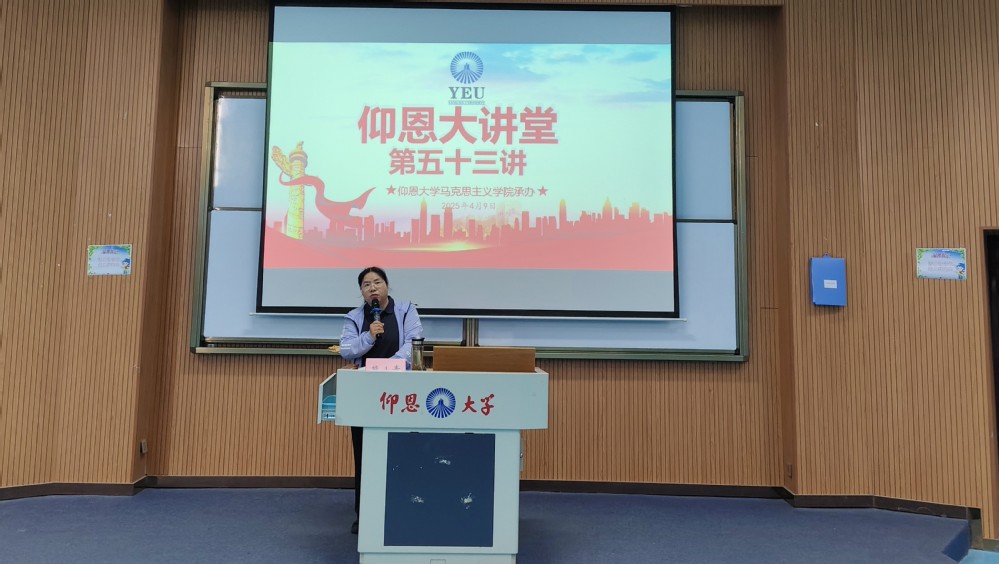 4月9号下午3点,仰恩大讲堂第五十三讲在新区和昌教学楼海纳讲堂举行,熊小青教授作了题为《生态文明及其新时代的中国实践》的报告。此次活动由pp电子游戏官网直属党支部书记章娇娜主持,pp电子游戏官网全体教师、习近平新时代中国特色社会主义思想读书社全体成员以及各学院的200多名师生到场聆听。