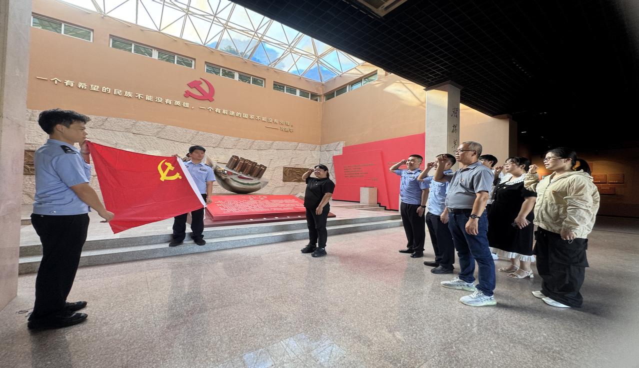 随后,队伍移步至烈士纪念馆参观。馆内陈列的历史文物、珍贵图片和文献资料,生动再现了革命先辈们为了民族存亡和人民幸福,不畏强暴、血战到底的英雄事迹。党员们驻足凝视,认真聆听讲解,深刻感受那段烽火岁月的艰难曲折和先烈们视死如归、宁死不屈的民族气节,不畏强暴、血战到底的英雄豪情。