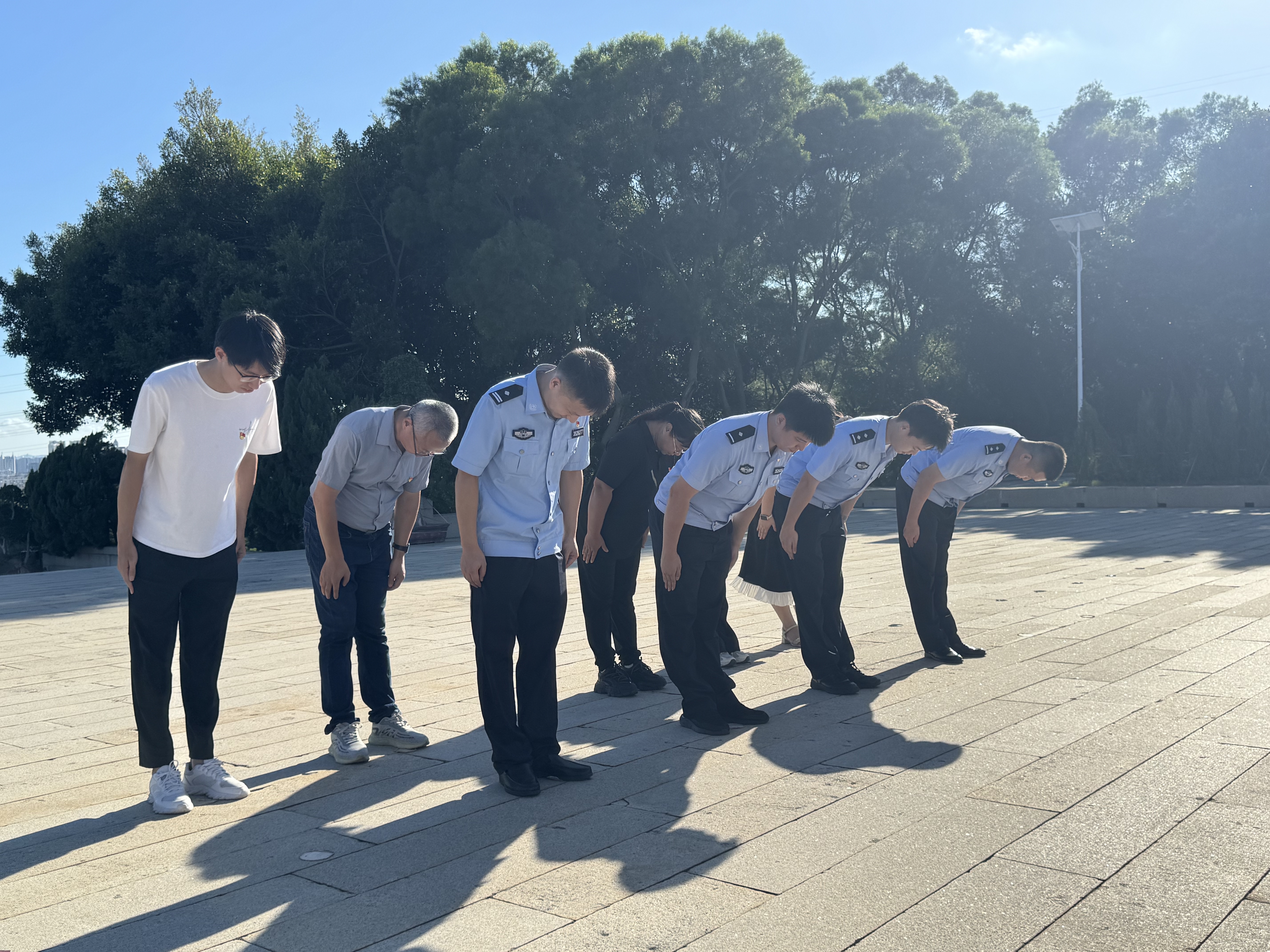 参观结束后,在巍峨的纪念碑前,全体党员面对鲜红的党旗,庄严地举起右拳,重温入党誓词。“我志愿加入中国共产党……随时准备为党和人民牺牲一切,永不叛党。”铿锵有力的誓言在空中回荡,表达了同志们继承先烈遗志、永葆政治本色、为党和人民事业奋斗终身的坚定决心。宣誓完毕后,全体人员合影留念,记录下这一庄严时刻。