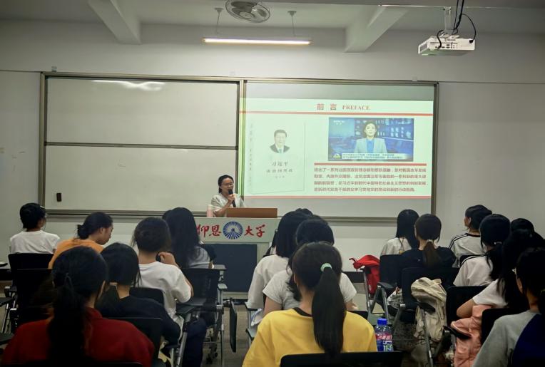 为推动习近平新时代中国特色社会主义思想读书社社员深入学习领悟习近平新时代中国特色社会主义思想,近日,习近平新时代中国特色社会主义思想读书社于普照楼205教室举办“新时代伟大变革的思想导航与行动纲领——《习近平谈治国理政》第五卷”主题学习会。本次学习会由pp电子游戏官网蔡惠丽老师主讲,读书社全体学生积极参与。