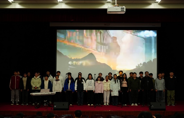 比赛过程中,18支参赛队伍轮番登场,用歌声诠释青春与理想,所选曲目涵盖经典爱国歌曲、流行励志佳作等多元类型。灯光映照着每位演唱者专注的神情,各声部相互配合、彼此呼应,从激昂的《少年中国说》到深情的《我爱你中国》,从温暖的《世界赠予我的》到坚定的《强军战歌》,参赛队伍演唱的每一个音符都深深触动着观众的心弦。同学们在演唱中融入真情实感,部分班级还通过整齐的肢体动作、饱满的精神面貌增强舞台表现力,让合唱节目更具观赏性。