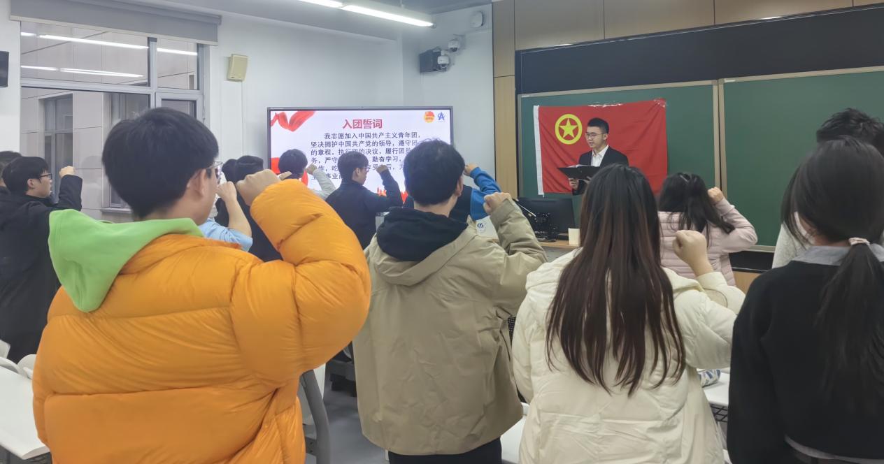 2025年11月5日下午,买球的app排行榜前十名推荐在新主楼F203举办“青春为中国式现代化挺膺担当”2025-2026学年秋季学期集中入团仪式。学院团委书记乔娇,团委副书记吕子良,学院团委组织部、各团支部、新老团员代表20余人参加。仪式由李梓源同学主持。