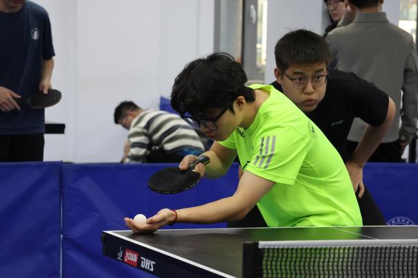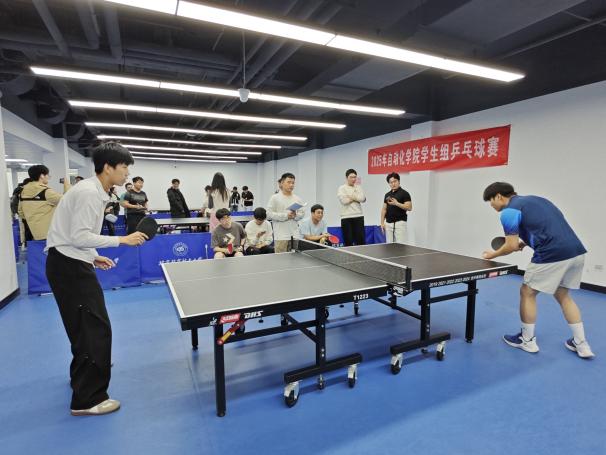 颁奖仪式后,一场别开生面的师生交流赛随即展开,师生们在轻松的氛围中切磋技巧,银球的跃动与师生的畅谈交织,让方寸球台成为跨越师生身份的交流纽带。